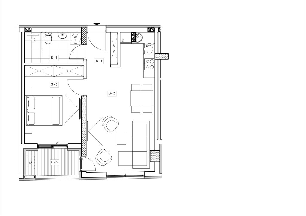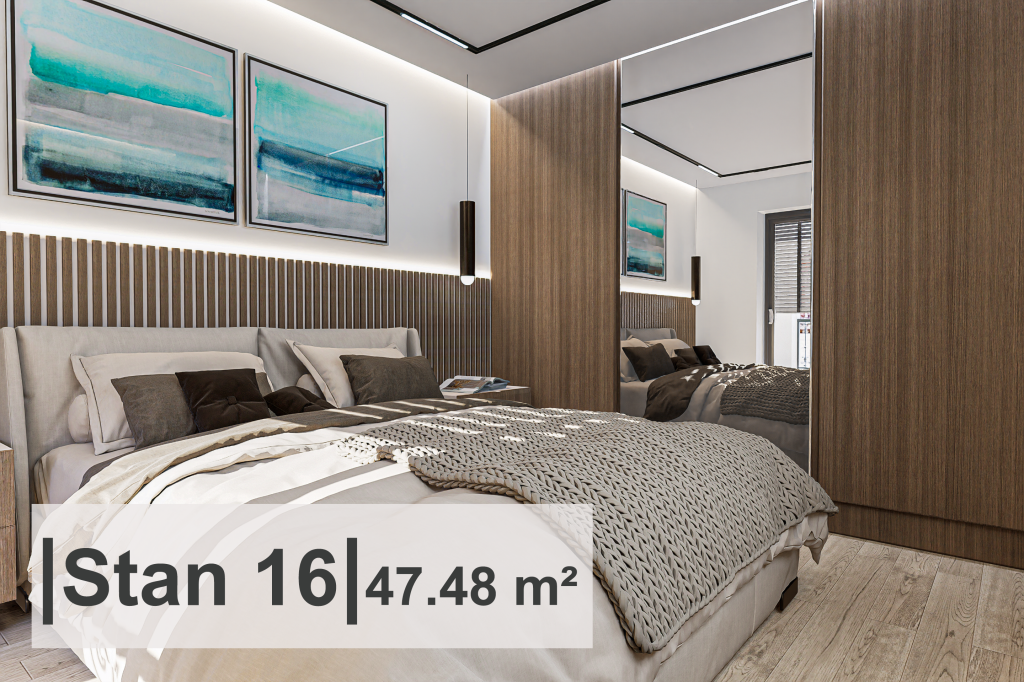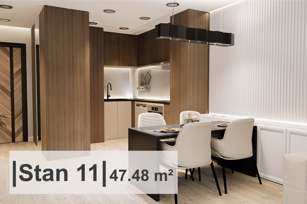 Ovaj jednoiposoban stan idealan je za samce ili parove koji žele funkcionalan i moderan prostor. Otvoren dnevni boravak sa kuhinjom i trpezarijom stvara svetao i prijatan ambijent. Spavaća soba nudi udoban prostor za odmor, a terasa je savršen kutak za uživanje na svežem vazduhu.